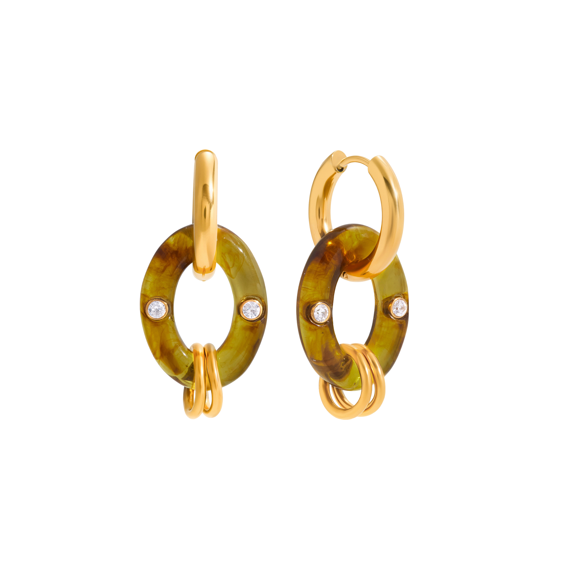 Los aros Golden Hoops de resina marrón son una opción elegante y ligera para cualquier ocasión. Su diseño distintivo resalta tu personalidad y se adapta a diferentes estilos. ✨ Completa tu look con un toque único y sofisticado. ¡Te encantarán! 💖