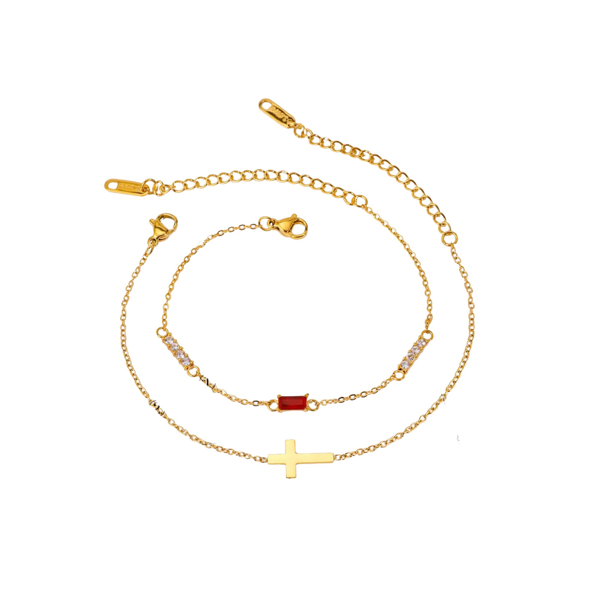 Descubre la elegancia del Bracelete Rojo y Dorado Cross. 🏆 Esta pieza única, que combina dos pulseras en un diseño deslumbrante, es perfecta para resaltar tu estilo y personalidad. ¡Luce radiante y deja una impresión inolvidable en cualquier ocasión! ✨