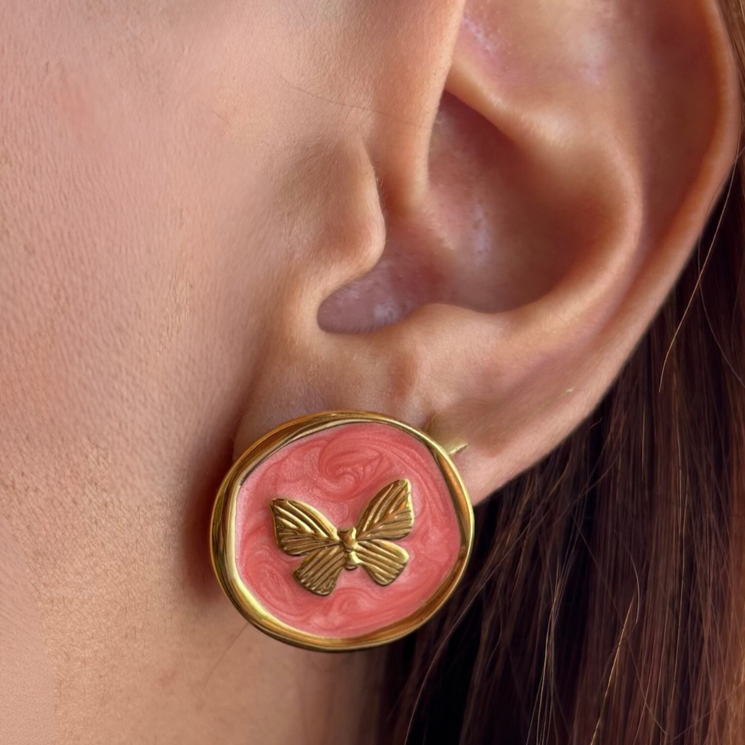 Luce estos aretes statement de botones rosas con una delicada mariposa dorada en el centro 🦋💖. Su diseño único y vibrante aporta un toque sofisticado y alegre a tu estilo, perfecto para destacar en cualquier ocasión. Añade un detalle encantador que refleja tu personalidad y celebra la belleza en cada detalle ✨🌸. ¡Haz que tus accesorios hablen por ti!