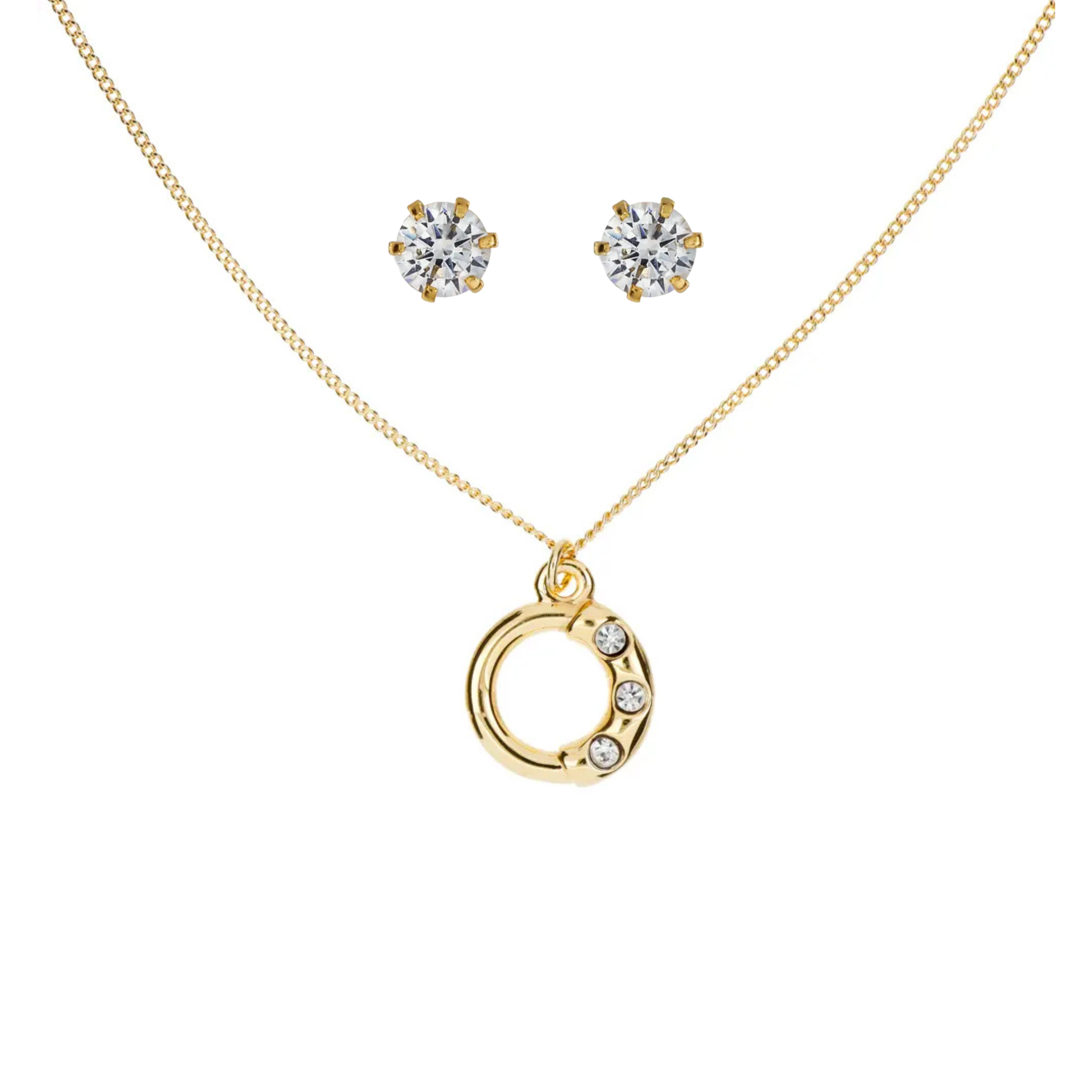 Elegante, moderno y con el brillito perfecto ✨💫. Este collar con aro y 3 destellos frontales, acompañado de broqueles de zirconia, es ideal para un look chic sin esfuerzo. Súper combinable, ligero y perfecto para cualquier ocasión 😉💛