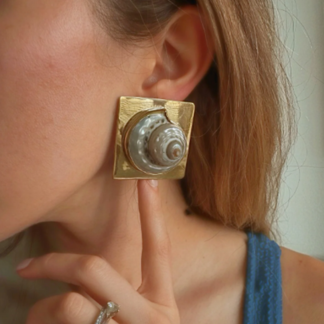 Lleva el mar contigo con estos elegantes pendientes de concha cuadrada.
