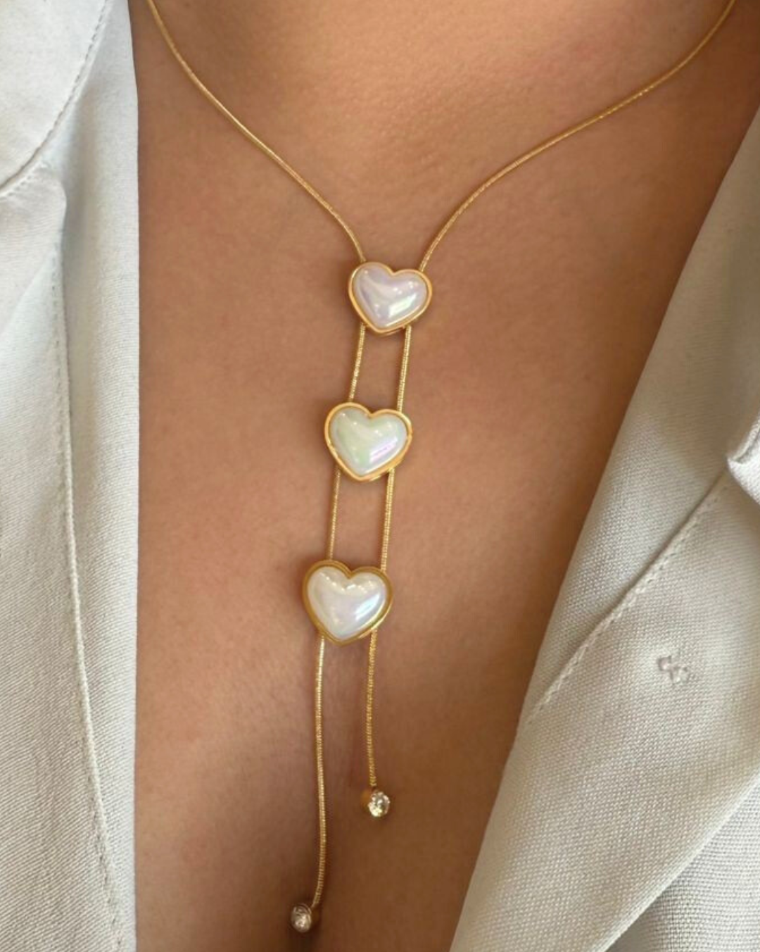 Luce un toque dulce con este collar con colgante de 3 corazones tipo perla 💖✨. Perfecto para darle brillo a tu día y expresar amor en cada detalle 💫💕. Su diseño único y delicado hará que te sientas especial en cualquier ocasión 🎀🌟. ¡Un accesorio que acelera corazones! 💓🎉