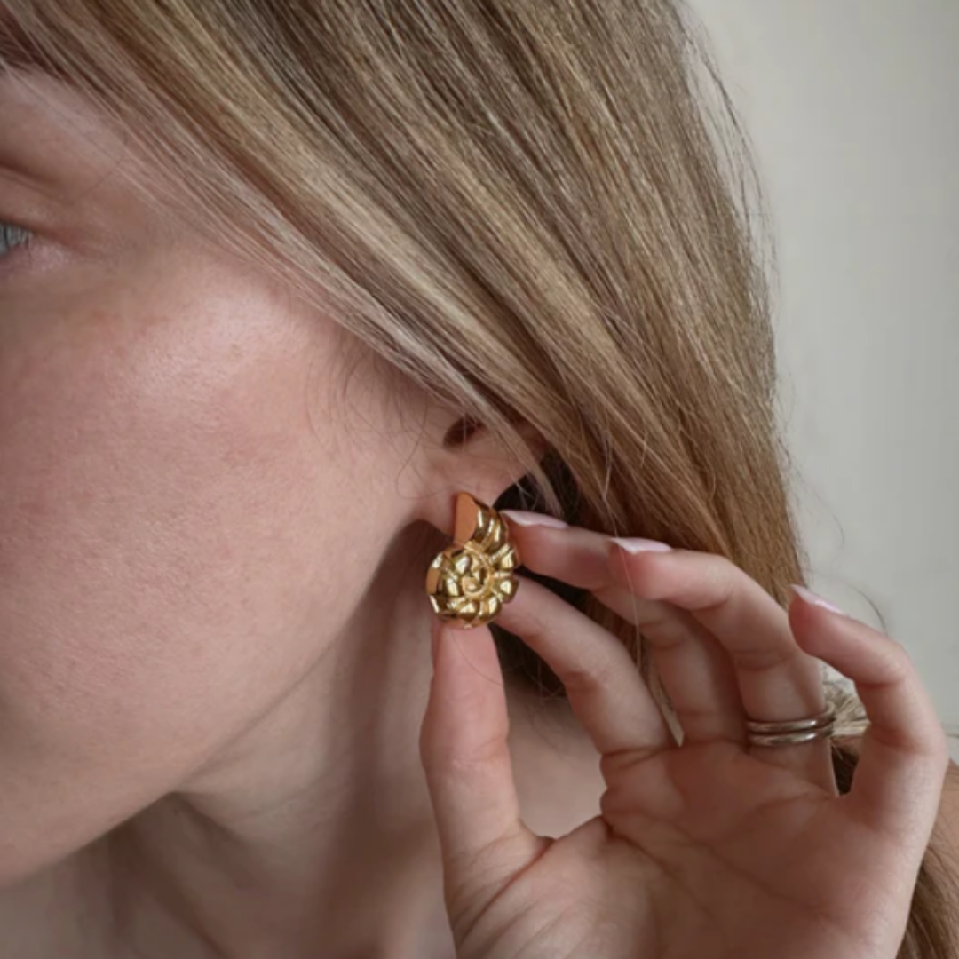 Los pendientes Soleil Spark iluminan tu look con un brillo dorado y detalles de conchas. Piensa en el sol, el brillo y el glamour veraniego natural. Perfectos para looks de destino o simplemente para darle un toque especial a tu estilo diario.